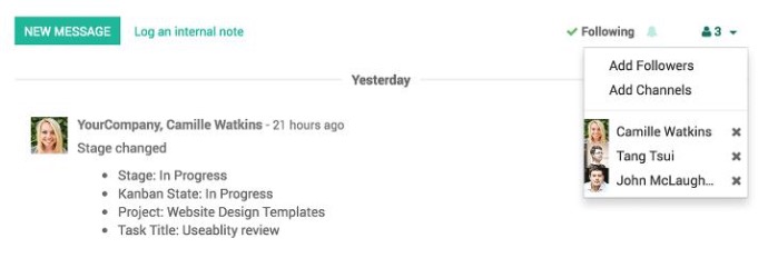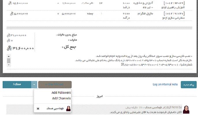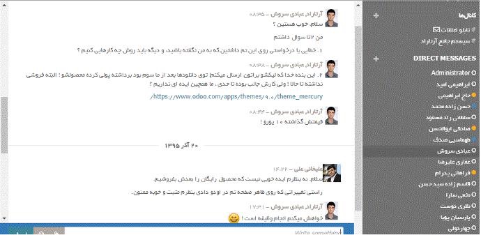 در هرکدام از ماژولهای اودوو که کار میکنید مهم نیست، میتوانید از همانجا با سایر کاربران سیستم پیام ردوبدل نمایید (chat)